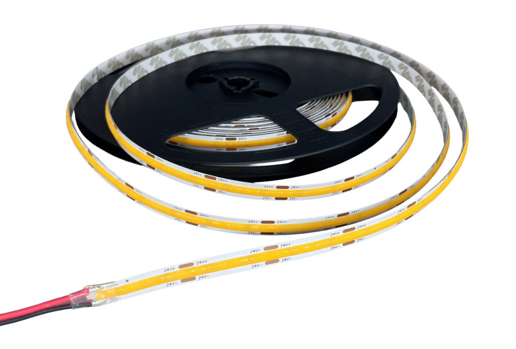 Leveres i boks hvor LED-Stripen ligger på trommel. Trekk enkelt ut ønsket lengde og klipp av. Tilgjengelig i 24V og 48V, hvor man kan gå opp mot 15m sammenhengende strekk. Begge modellene kommer i utførelsen Light Line, som gir 100% ren linje med lys. Passer utmerket i lavtbyggende alu. profiler.