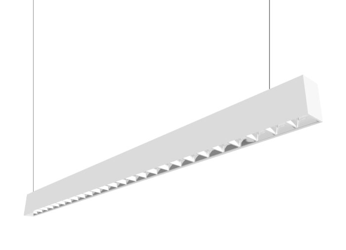 Elegant og slank pendel med opp- og nedlys. Rastere på undersiden sørger for lav blending (UGR<16) samtidig som den gir et godt arbeidslys. Passer perfekt på kontor og i offentlige miljøer, så vel som i private hjem.