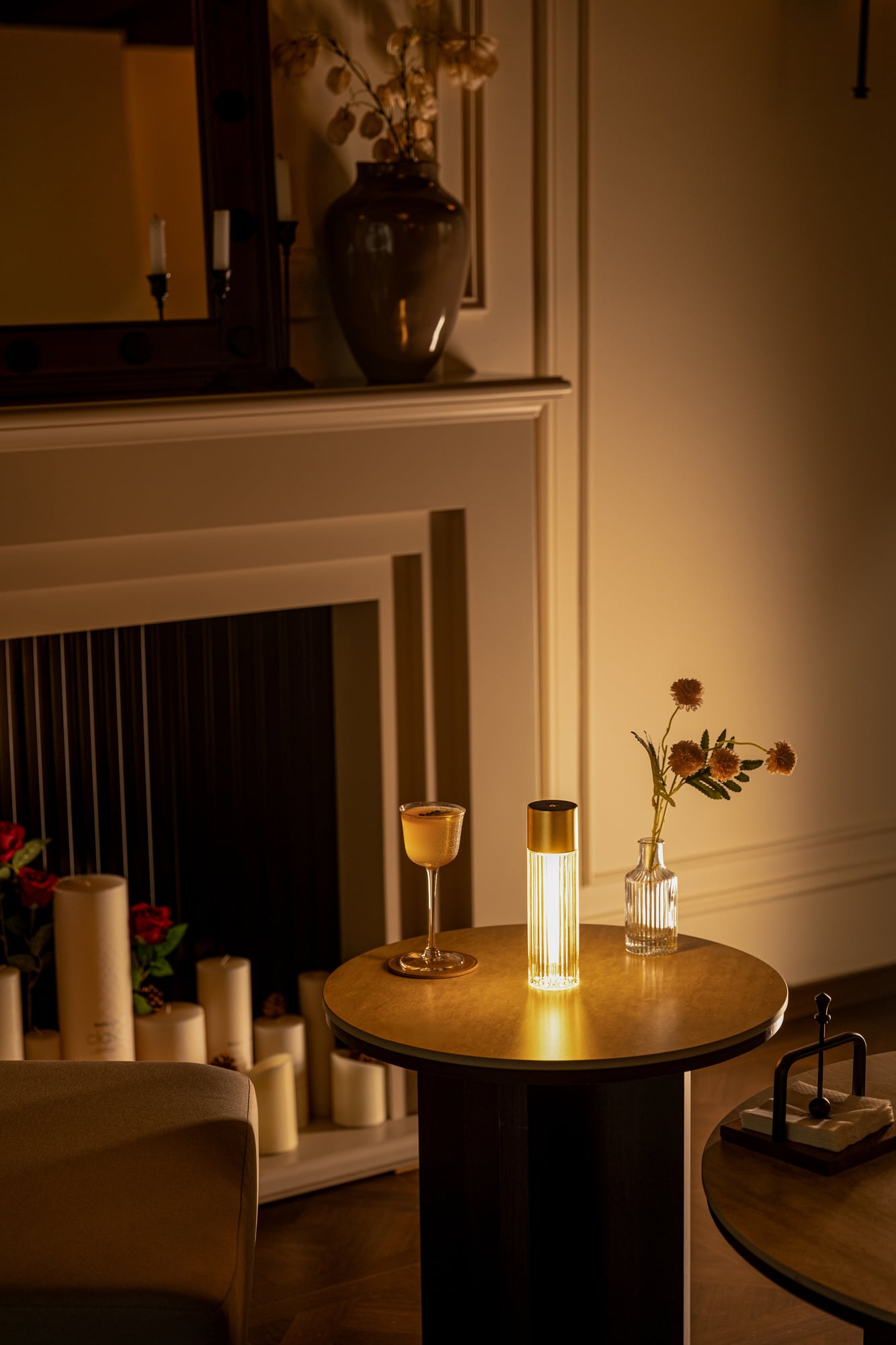 Ding H20 CS rechargeable table lamp, matt brass (with charging base)