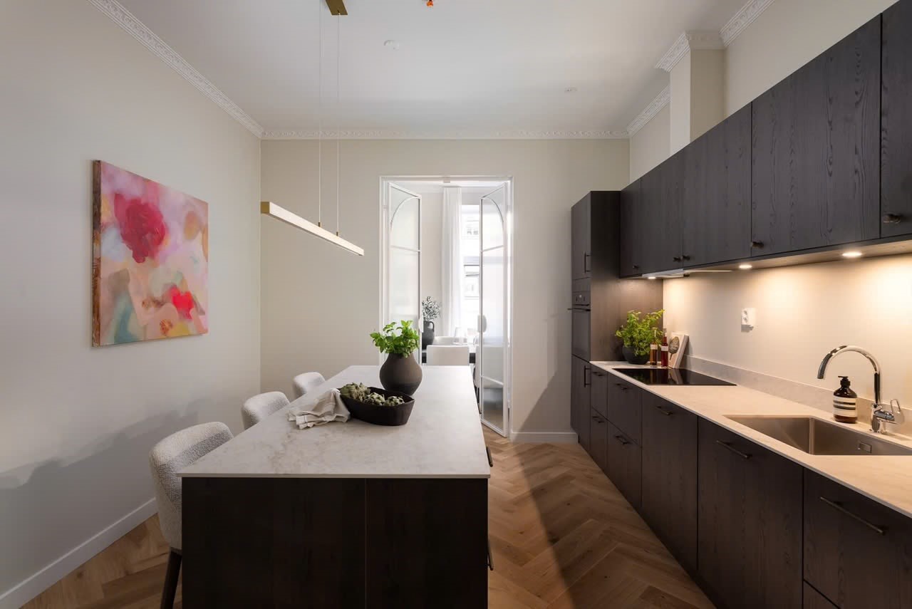Slank og stilren pendel i avlangt design. Pendelen gir en ren linje med lys og passer perfekt over et spisebord/ kjøkkenøy. Leveres med 150cm ledning, hvor høyden enkelt kan reguleres før og etter montering.