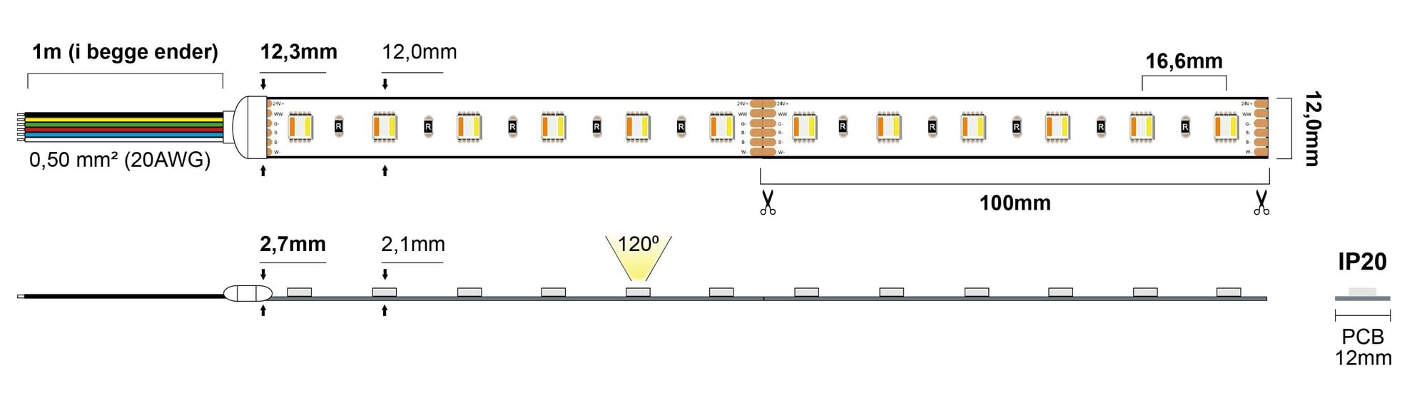 – Flerfarget LED Strip RGB + C (kaldhvit) og W (varmhvit)