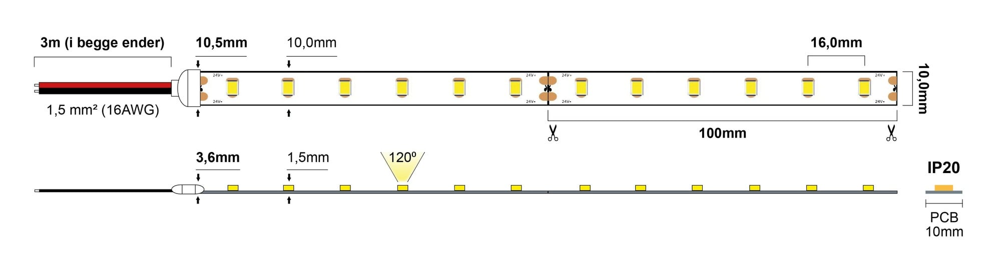 1200xSMD2835, 2700K - 570lm/m - CRI>90