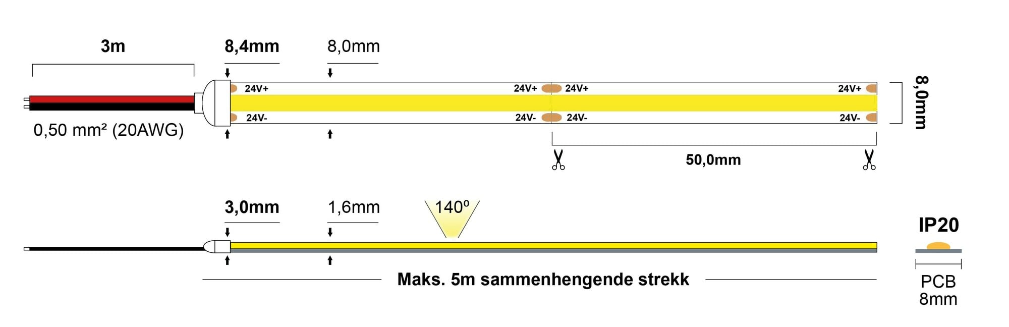 | Lyskilde | COF R2R, 4000K - 1035lm/m - CRI>90 |