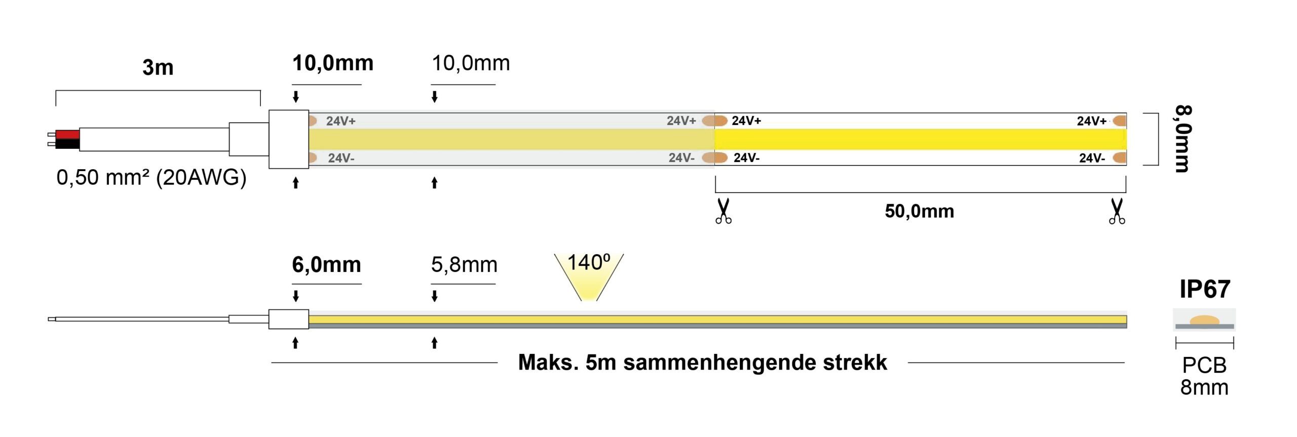 | Lyskilde | COF R2R, 4000K - 910lm/m - CRI>90 |