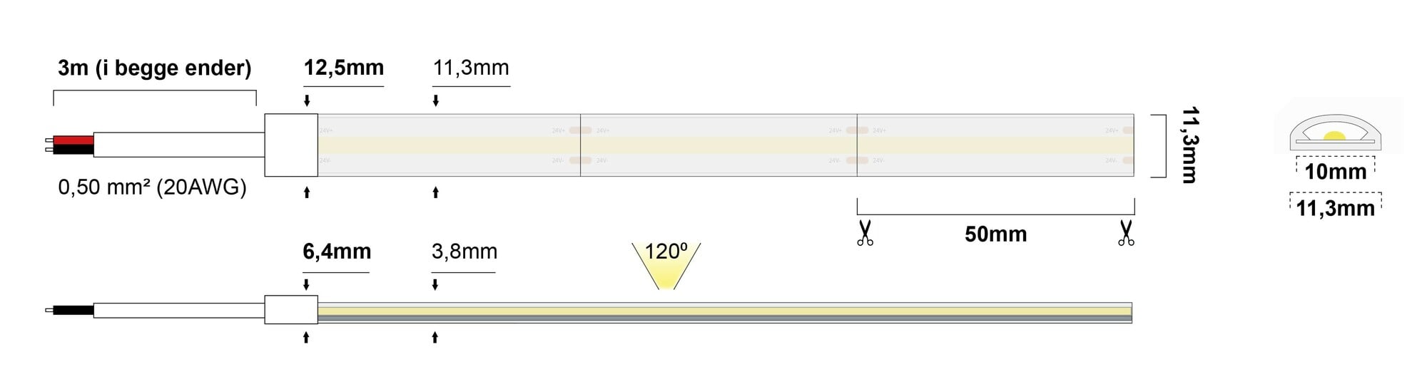 | Lyskilde | COF, 2700K - 380lm/m - CRI>90 |