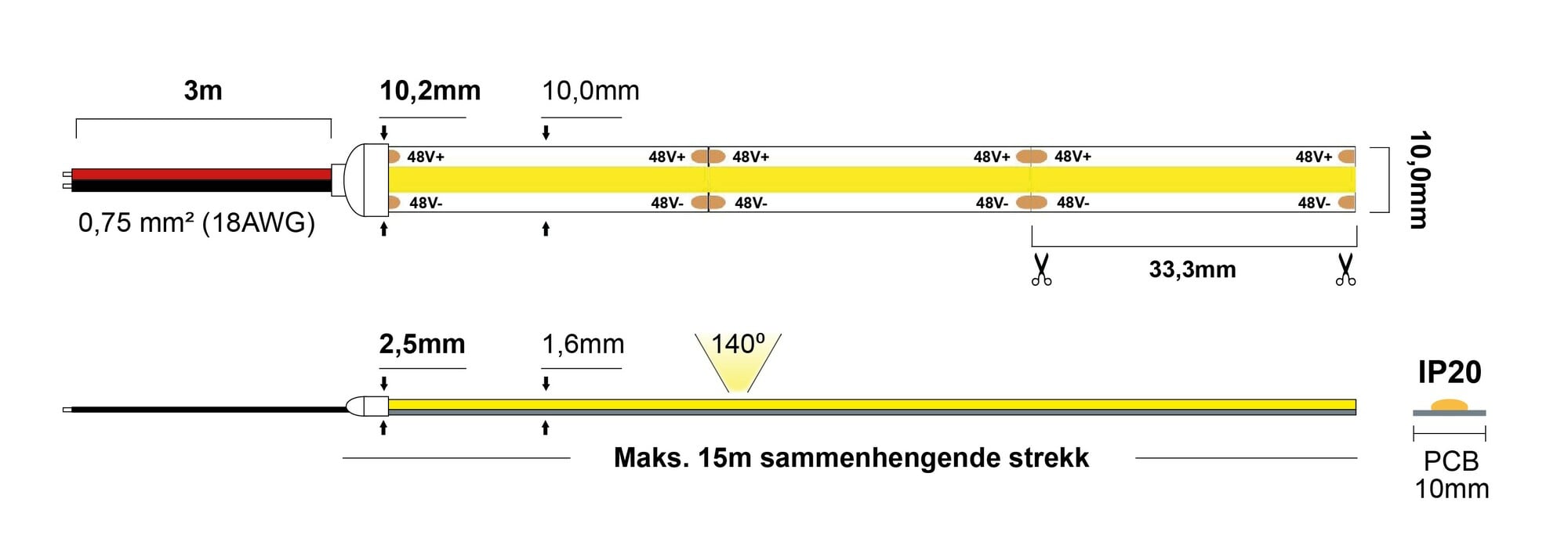 | Lyskilde | COF, 2700K - 790lm/m - CRI>90 |