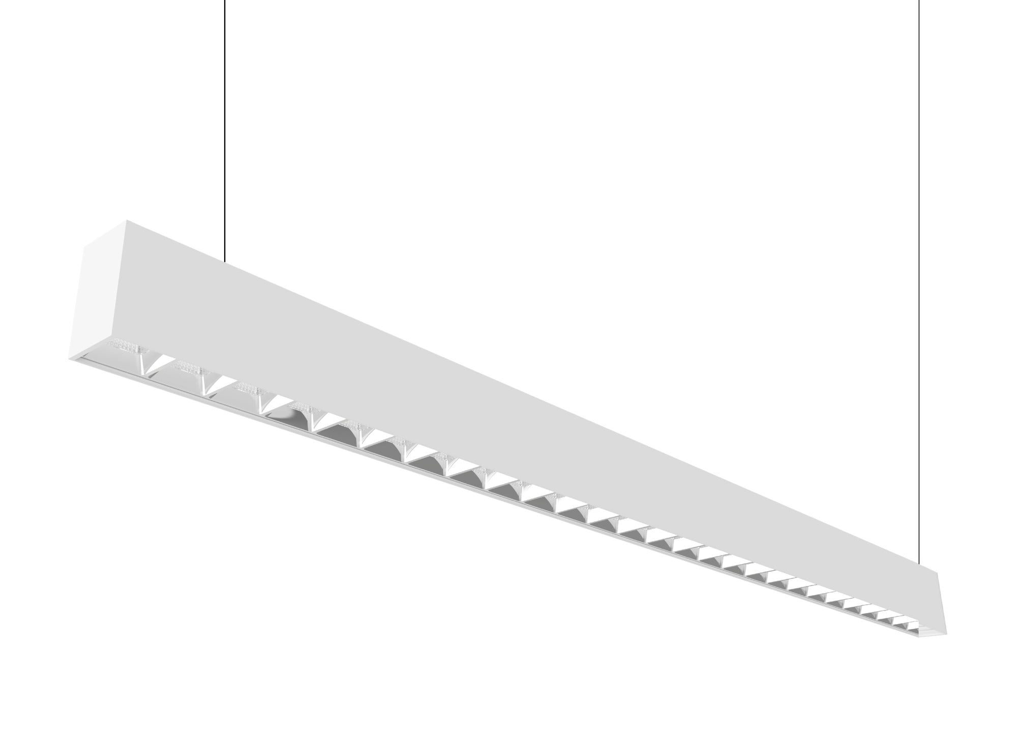 Elegant og slank pendel med opp- og nedlys. Rastere på undersiden sørger for lav blending (UGR<16) samtidig som den gir et godt arbeidslys. Passer perfekt på kontor og i offentlige miljøer, så vel som i private hjem.