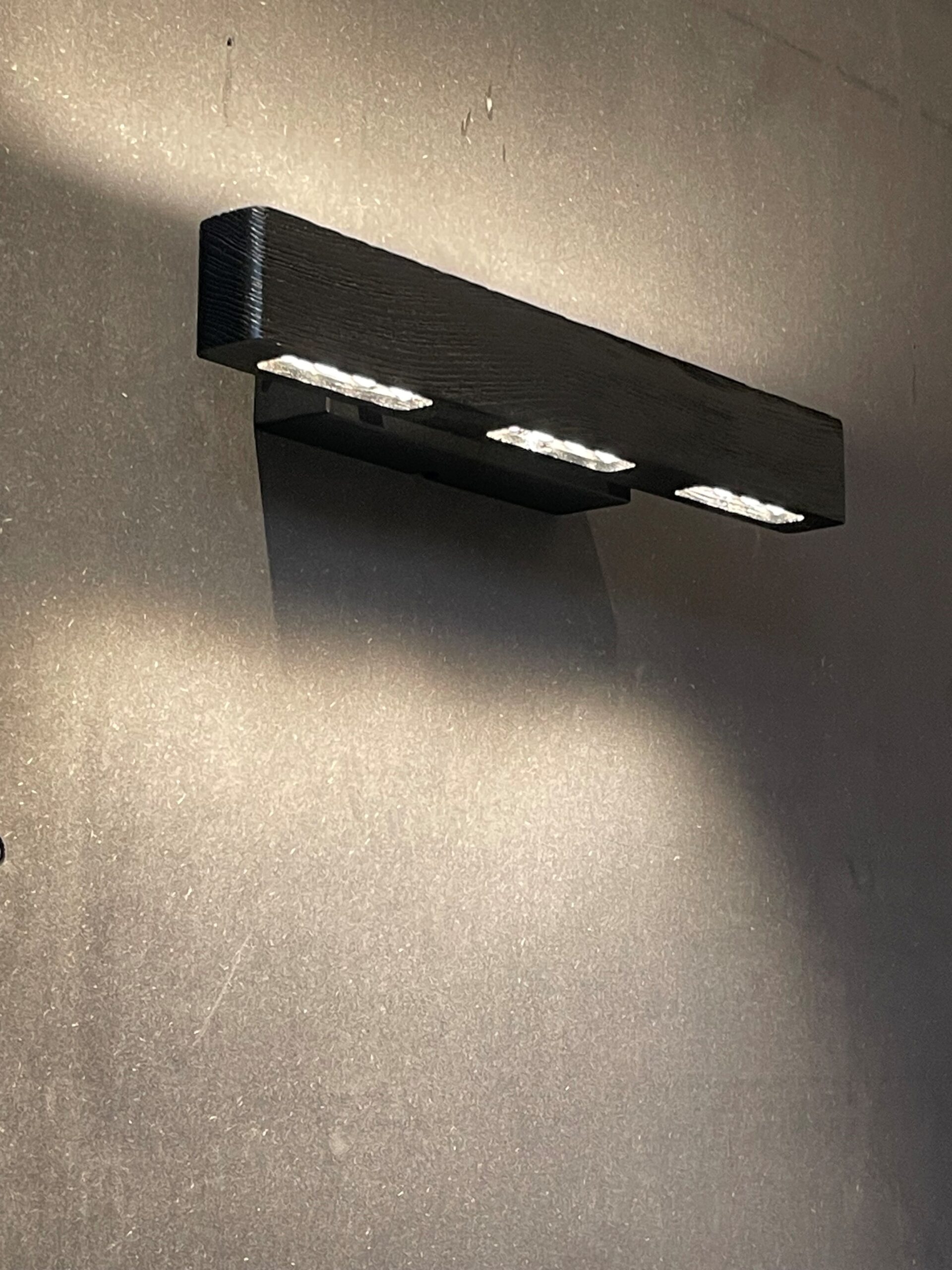 Dekorativ vegglampe i tre. Lampen har både opp- og nedlys og kan tiltes.
